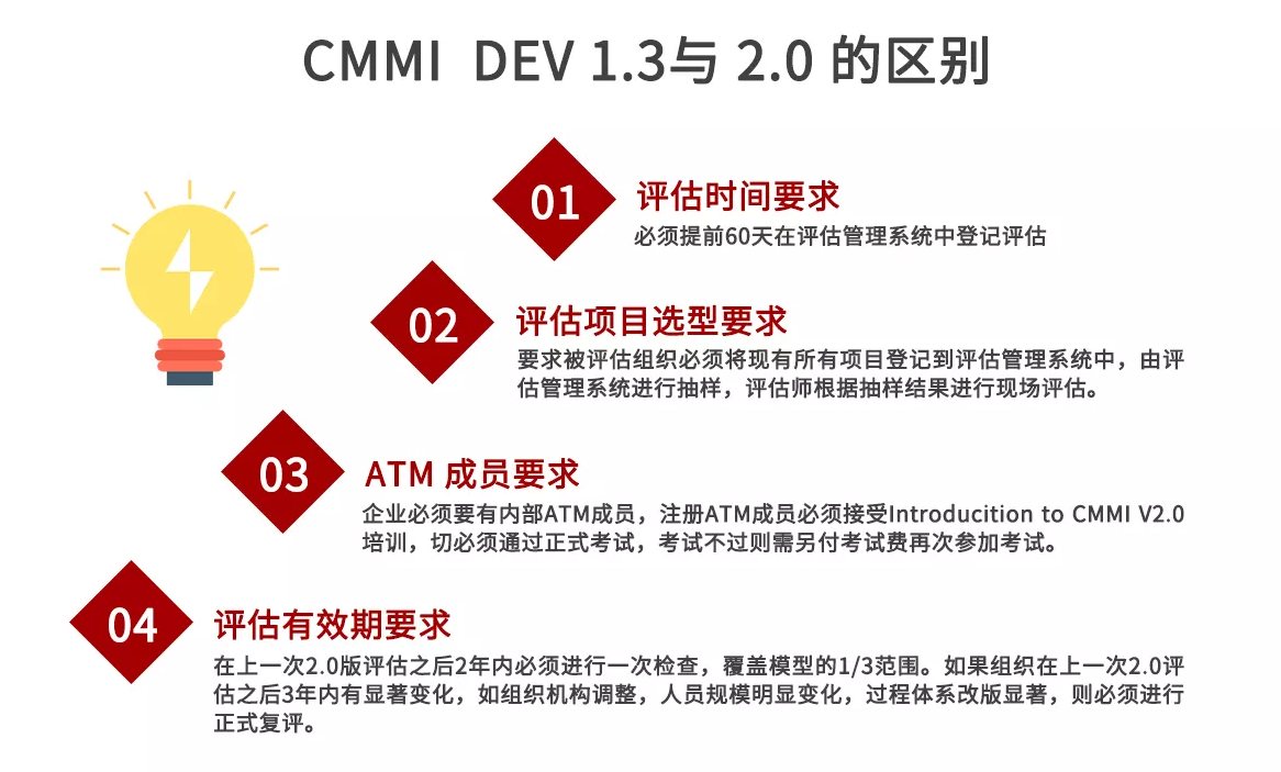 CMMILevel 5,優(yōu)化級(jí)。在優(yōu)化級(jí)水平上,企業(yè)的項(xiàng)目管理達(dá)到了最高的境界。企業(yè)不僅能夠通過信息手段與數(shù)字化手段來實(shí)現(xiàn)對(duì)項(xiàng)目的管理,而且能夠充分利用信息資料,對(duì)企業(yè)在項(xiàng)目實(shí)施的過程中可能出現(xiàn)的次品予以預(yù)防。能夠主動(dòng)地改善流程,運(yùn)用新技術(shù),實(shí)現(xiàn)流程的優(yōu)化。 企業(yè)在實(shí)施CMMI的時(shí)候,路要一步一步地走。一般地講,應(yīng)該先從二級(jí)入手。在管理上下功夫。爭取最終實(shí)現(xiàn)CMMI的第五級(jí)。