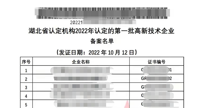 這里我想說還差一步,國家高新技術(shù)企業(yè)認定網(wǎng)近期還公示了第一批有高企證書號的備案名單,這個才是真正的通過。如下圖:
